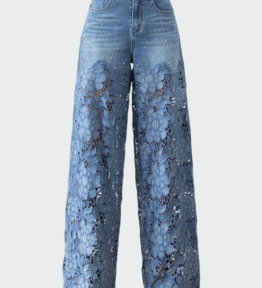 Karolína - Stilne Jeans Hlače s Širokimi Nohavicami